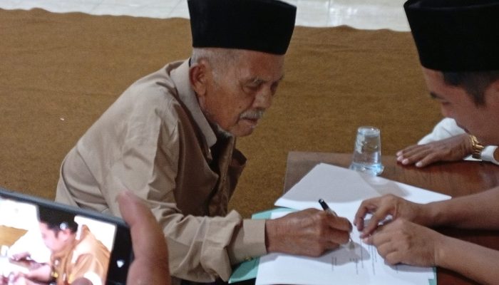 KUA NGANTU – Jumat, 7 November 2025 KUA kecamatan Ngantru kabupaten Tulungagung jemput bola layanan kepada masyarakat, kali ini satu bidang wakaf di Desa Banjarsari dari seorang Wakif bapak H. Anwar mengikrarkan sebidang tanahnya seluas 334 meter persegi untuk diserahkan kepada Nadzir organisasi yayasan Al Anwar, dalam hal ini sebagai ketua nadzirnya adalah ketua yayasan Al Anwar DR. Amaruddin, M.Pd.,