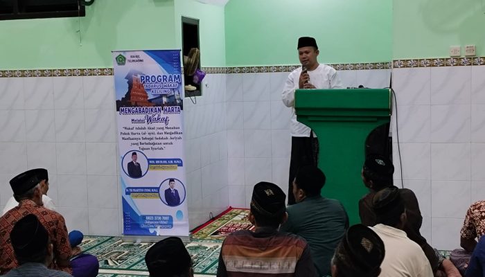 Geliat wakaf menunjukkan antusias positif di masyarakat. Antusias tersebut ditunjukkan dengan adanya peningkatan jumlah wakaf yang terus didaftarkan di Kantor Urusan Agama selaku pejabat pembuat Akta Ikrar Wakaf (AIW). Perkembangan ini tentunya memerlukan respon dan penyikapan konstruktif. Respon konstruktif ditunjukkan dengan adanya inovasi edukasi wakaf, melalui Program Tadarus Wakaf. Tadarus Wakaf menjadi langkah inovatif penyuluh Agama Islam di KUA Kecamatan Tulungagung untuk mengajak jamaah majelis taklim memperdalam pengetahuan tentang wakaf. Moh. Kudlori, S.HI. M.Pd.I. dan Dr. Tri Prasetiyo Utomo, M.Pd.I. atas arahan serta bimbingan Kepala KUA Kecamatan Tulungagung Drs. Mukhroji, M.Pd.I. mencetuskan Program Tadarus Wakaf.