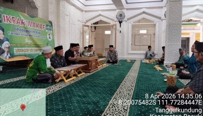 Kegiatan ini merupakan bagian dari upaya pendampingan dan pembinaan umat dalam meningkatkan kesadaran berwakaf sebagai instrumen penting dalam pengembangan sarana ibadah dan pendidikan. Ikrar wakaf dilakukan oleh wakif, Eko Sulistiyono, dengan nadzir dari BHPNU MWCNU Besuki, Safuan, S.Ag.