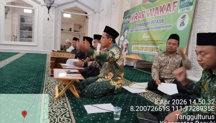 Tulungagung — Penyuluh Agama Islam Kantor Urusan Agama (KUA) Kecamatan Besuki turut mengawal dan menyukseskan pelaksanaan ikrar wakaf yang digelar pada Rabu, 8 April 2026 pukul 14.00 WIB di Masjid Al Amin, Desa Tanggulturus, Kecamatan Besuki, Kabupaten Tulungagung.